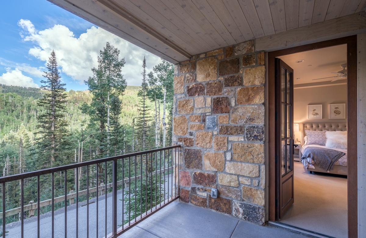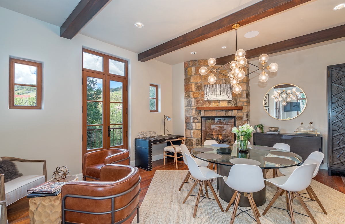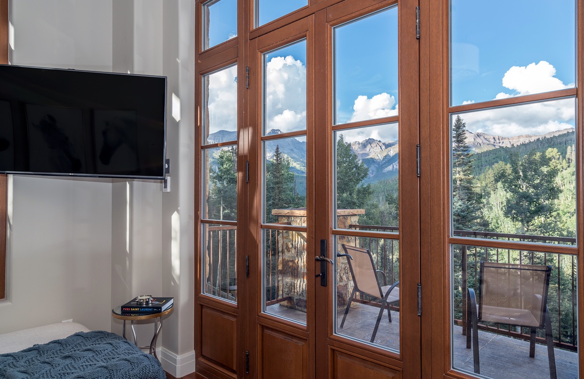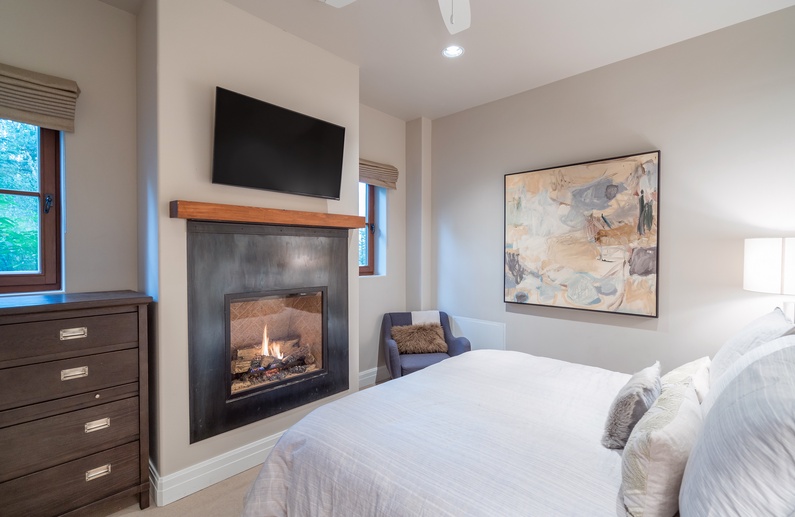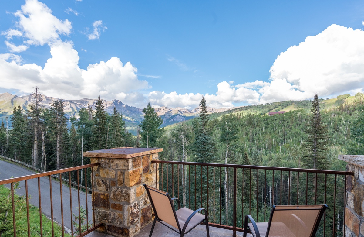 gas fireplace, a private terrace and mountain views